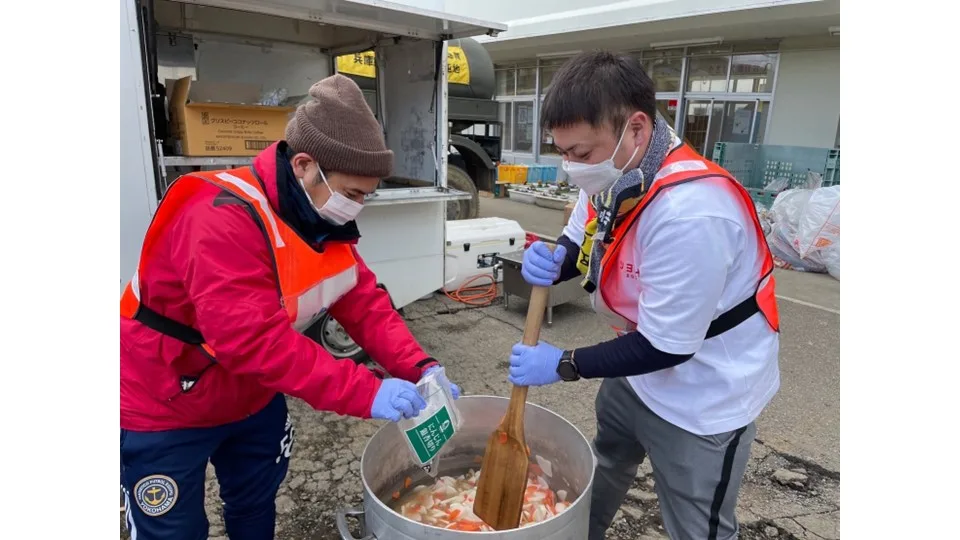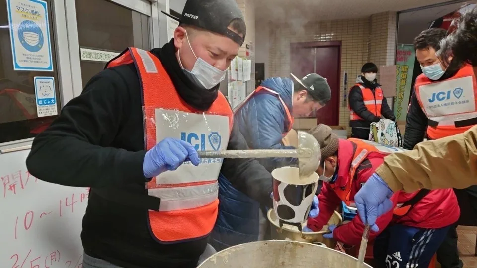 理事長 萩原 幸雄 君を含む9名の横浜JCメンバーが2月3日に輪島市鳳至(ふげし)小学校で炊き出しを行いました。