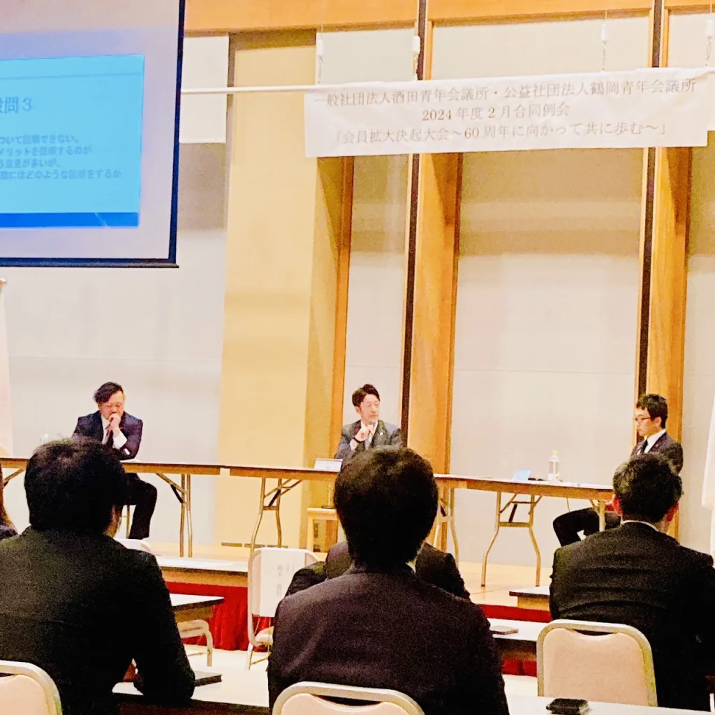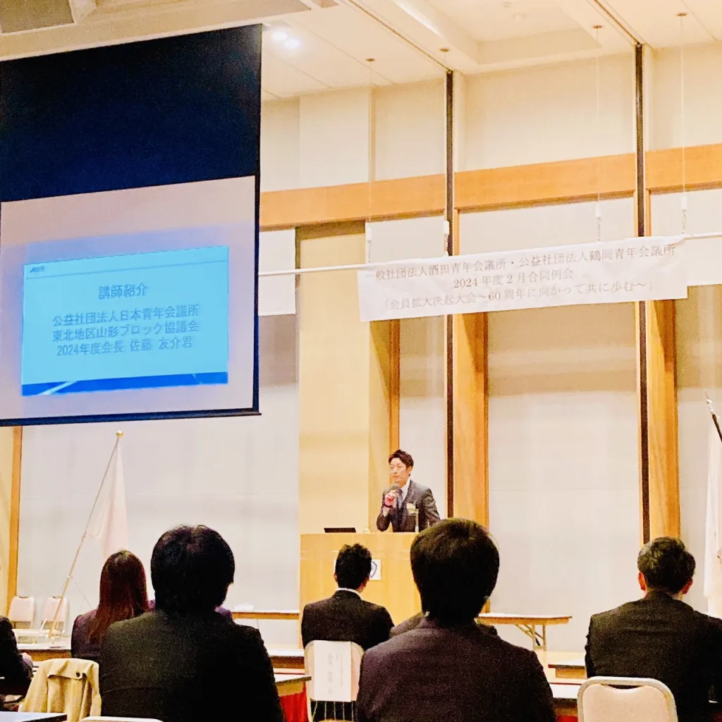 【一般社団法人酒田青年会議所・公益社団法人鶴岡青年会議所2024年度 2月合同例会「会員拡大決起大会~60周年に向かって共に歩む~」での、会長講演・トークセッション】