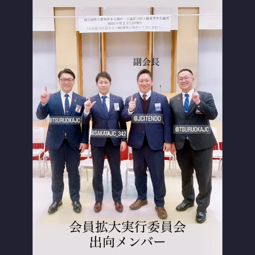 2月15日、第1ブロックの酒田JCさんと鶴岡JCさんの合同例会へ参加し、会員拡大の重要性についての講演、また両理事長と会員拡大についての想いの共有を行ってきました。