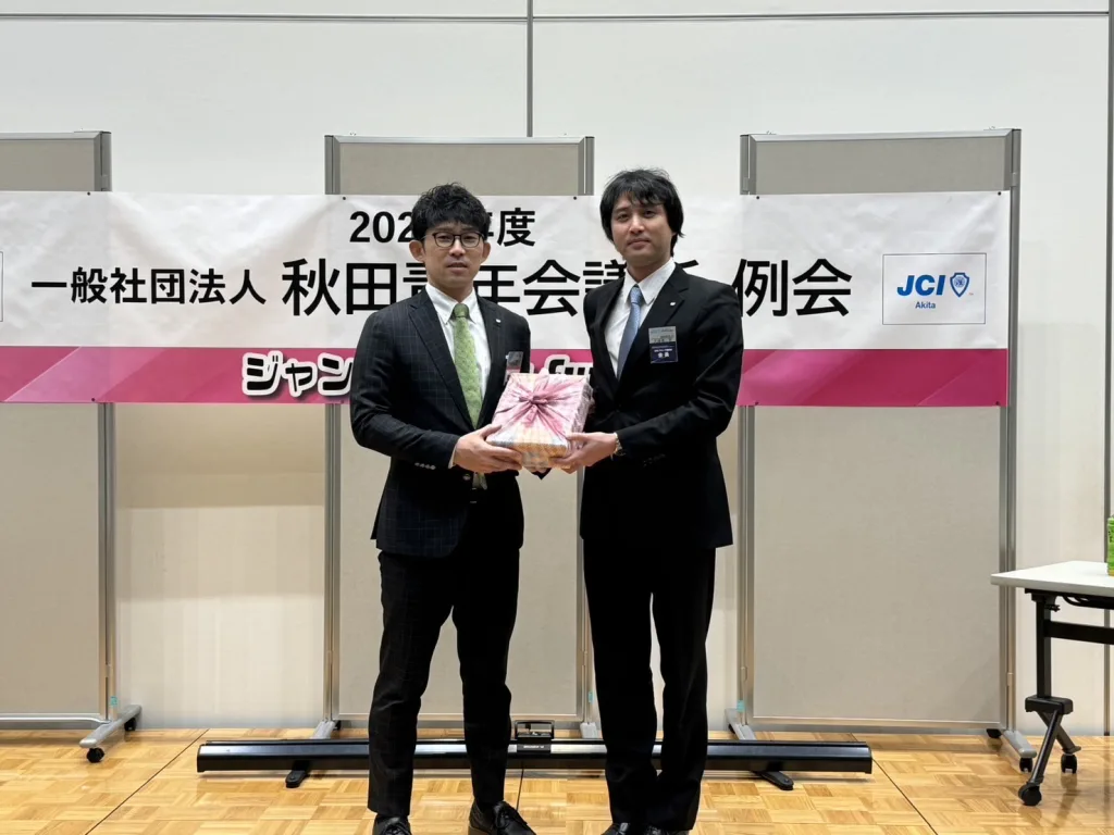 秋田JC3月例会「学ぼう東北青年フォーラム、高めようみんなの意欲」例会へ出席してきました。秋田JCは2025年度東北青年フォーラムの主管を務められます。例会では、2019年主管の能代JCより佐藤裕之君、2023年主管の北上JCより伊藤陽介先輩を講師にお招きし、パネルディスカッション形式で開催に向けた準備や流れ、主管をしたことによるLOMやメンバーの変化などを当時の思い出話を交えながらお話しいただきました。活発な意見交換のもと、2025年に向けた意欲と気運が高まりました。秋田ブロックとしても全力でサポートして参ります。