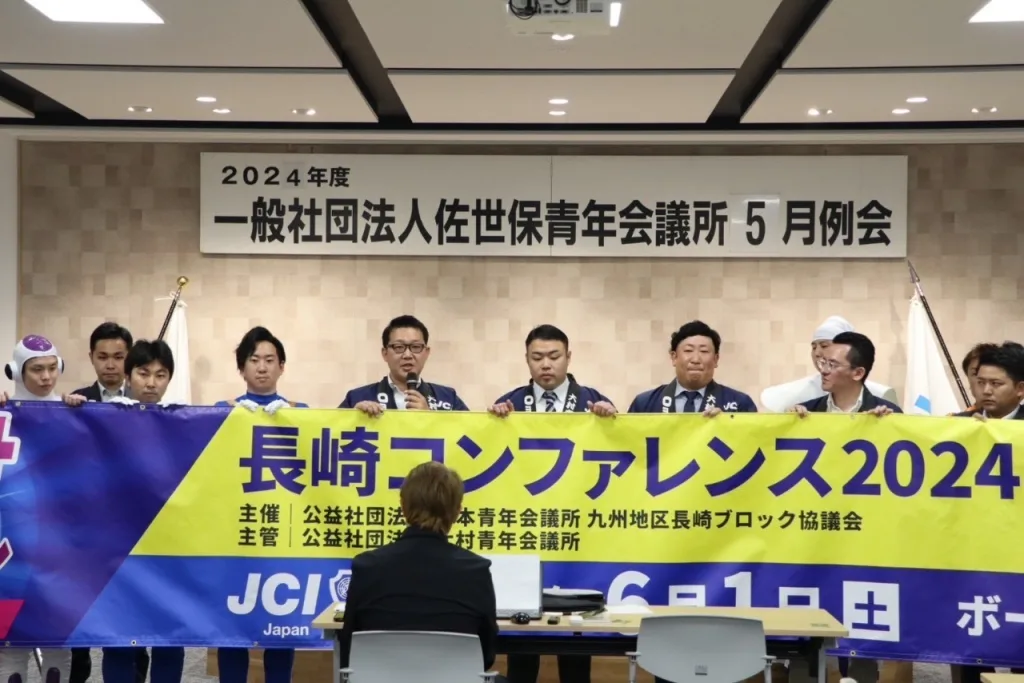 5/10(金)に佐世保青年会議所5月例会にて、長崎ブロック役員と主管LOMの大村青年会議所による、長崎コンファレンス2024in大村のPRキャラバンを行いました✨