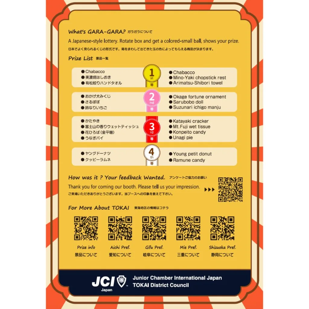東海地区協議会のブースでは、「東海地区の魅力を当てよう!ガラガラ抽選会 GARA-GARA Lottery」と題して、東海4県の特産品・名産品が当たるガラガラ抽選会を開催します。