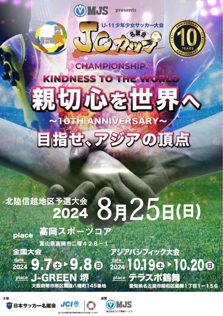 また、今年JCカップは10周年を迎えます。2024年度の日本JC基本理念と本大会テーマを浸透させる本年ならではの取り組みとして、各チームより1名「親切心ある選手」を選出し、表彰する予定としております。