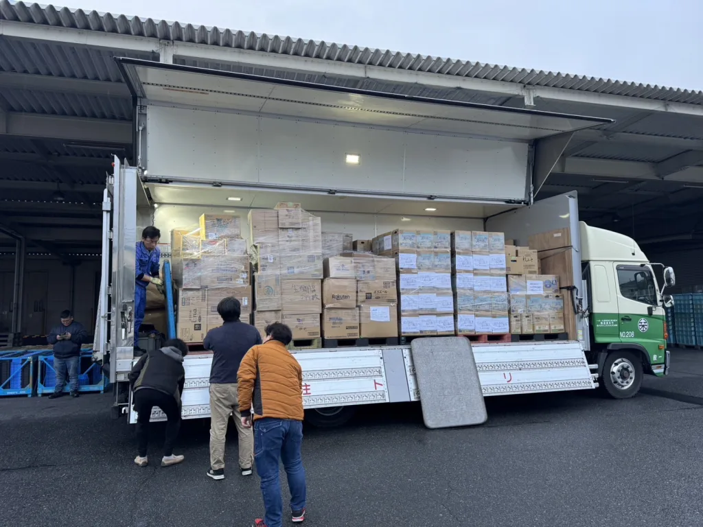 岡山ブロック協議会は既に岡山県内各地から集まった救援物資を運送しております。